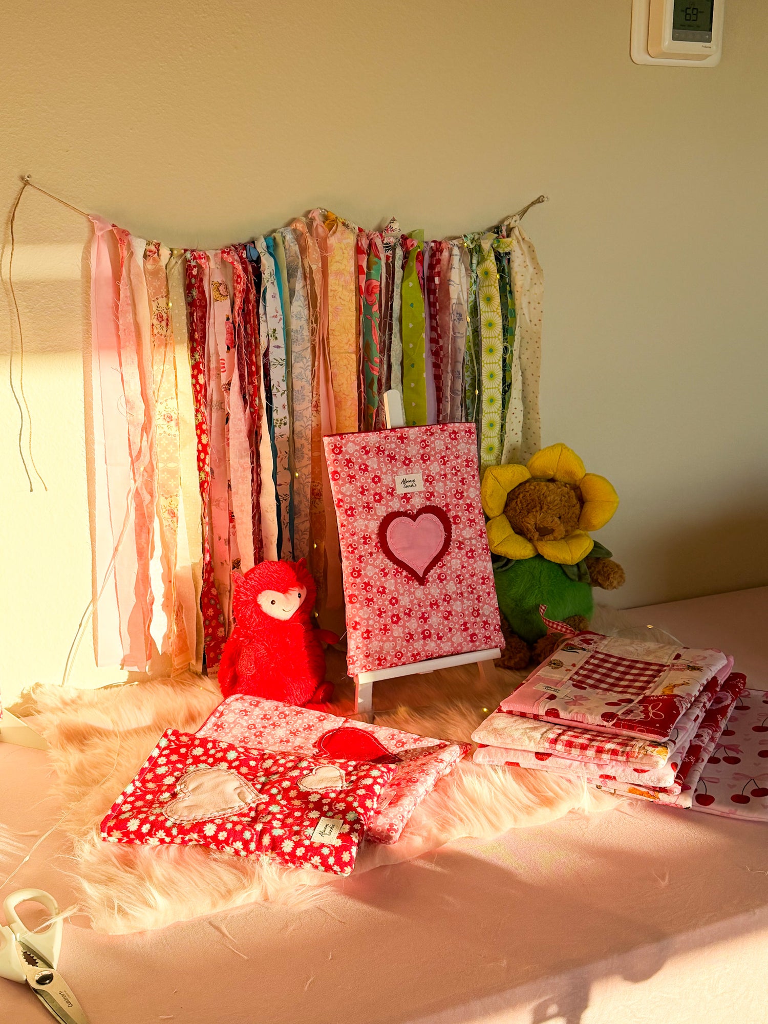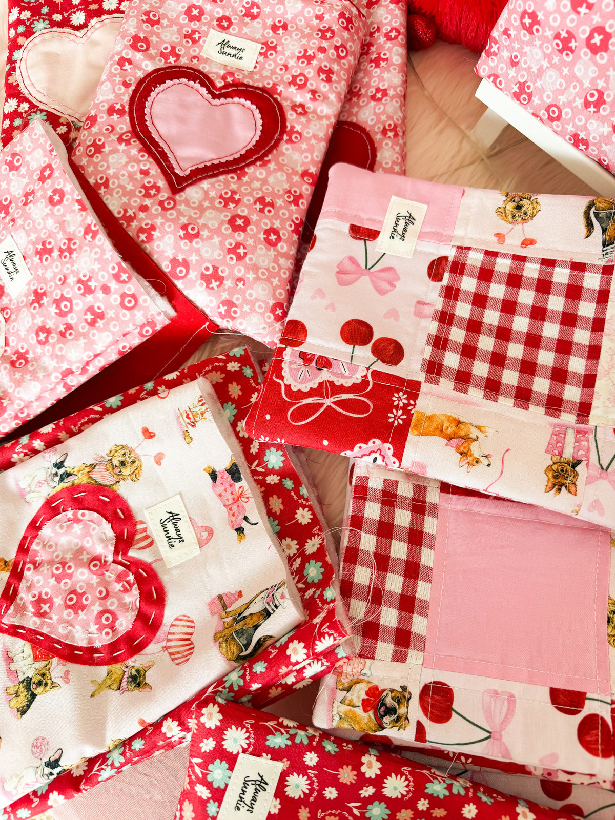 Made for lovers of pinks and reds, each fabric was hand-seletected to be in this collection. I hope you enjoy these pieces as much as I do! I hope you feel the love and joy radiating from these carefully hand-picked fabrics.