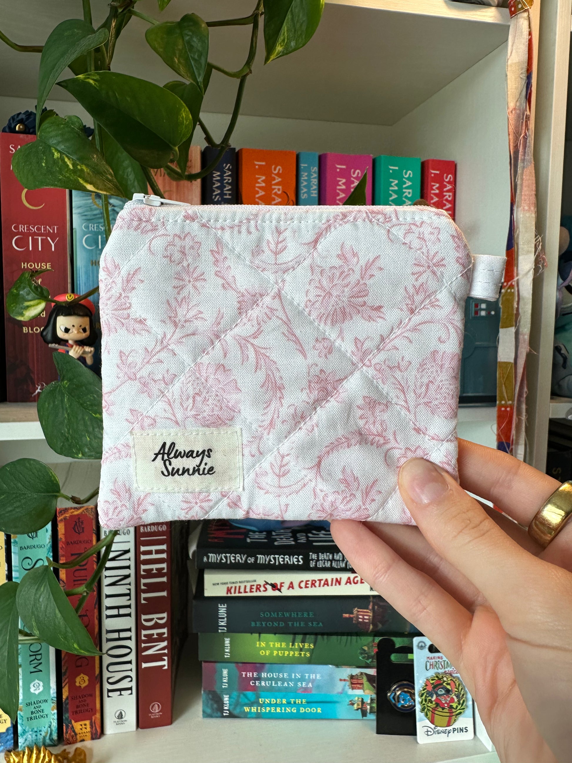 This elegant Pennie wallet is a handmade cozy companion measuring 4" x 4.5". Crafted from 100% cotton inside and out, it’s perfect for stashing cards, cash, lipstick, or any little treasures you want nearby. Featuring a crisp white zipper and a handy side loop, you can clip it to your keys or add a fun keychain to match your style. Keep your essentials cheerful and close with this charming pouch!